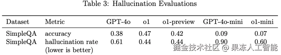 你有没有注意到上面只显示了“准确率”?我没有找到o3-mini在SimpleQA上的“幻觉率”。这本身就很有意思。