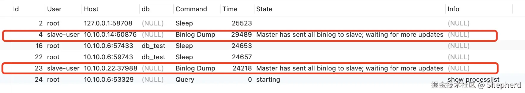 show processlist可以看到: -