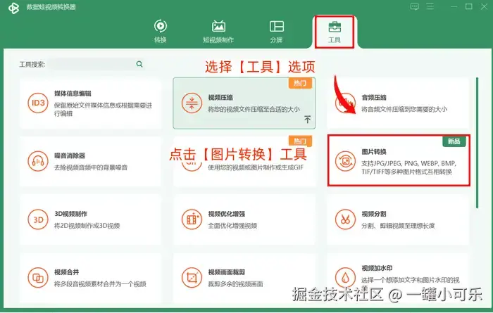 步骤1:打开该图片格式转换工具,选择界面上的【工具】选项,并点击工具界面下的【图片转换】工具。