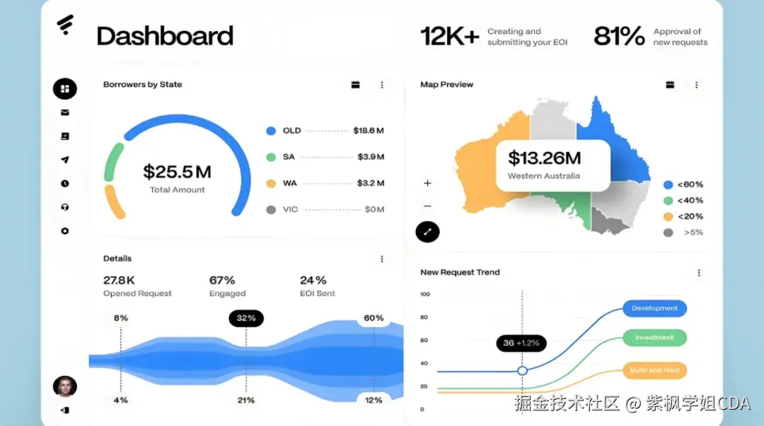 随着各行各业进行数字化转型,数据分析能力已经成了职场的刚需能力,这也是这两年CDA数据分析师大火的原因。和领导提建议再说“我感觉”“我觉得”,自己都觉得心虚,如果说“数据分析发现……”,肯定更有说服力。想在职场精进一步还是要学习数据分析的,统计学、概率论、商业模型、SQL,Python还是要会一些,能让你工作效率提升不少。备考CDA数据分析师的过程就是个自我提升的过程。