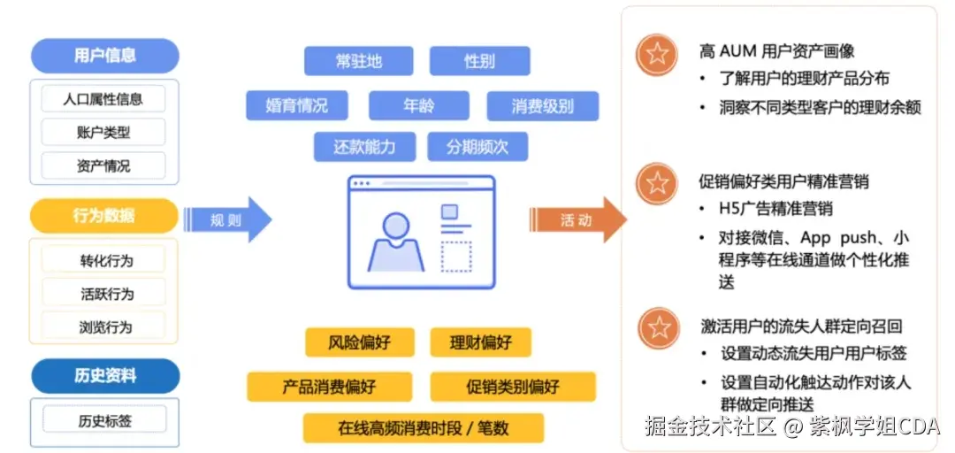 这些标签就像用户的“身份证”,帮助我们快速了解用户是谁、喜欢什么、做了什么。