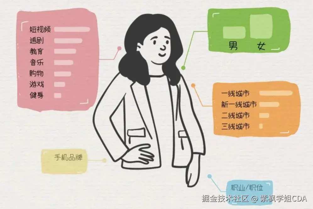 简单来说,用户标签体系就是给用户“贴标签”,把用户的属性、行为、兴趣等信息进行分类和标记。比如:
