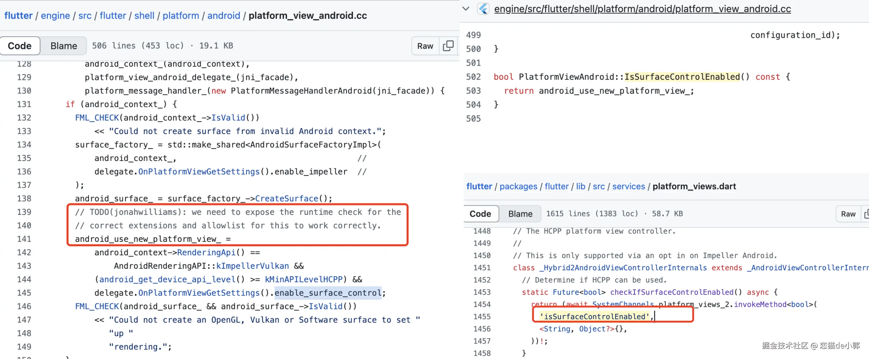 我们可以看提交更改里,基本上全新的 PlatformViewsController2 核心逻辑都在于操作 SurfaceControl :