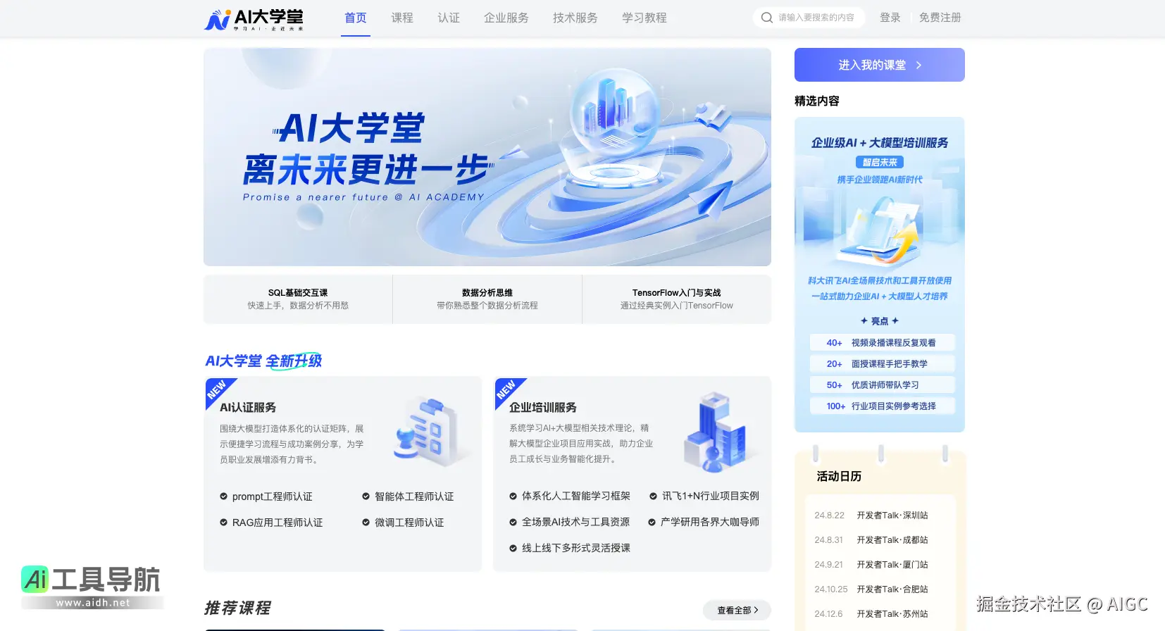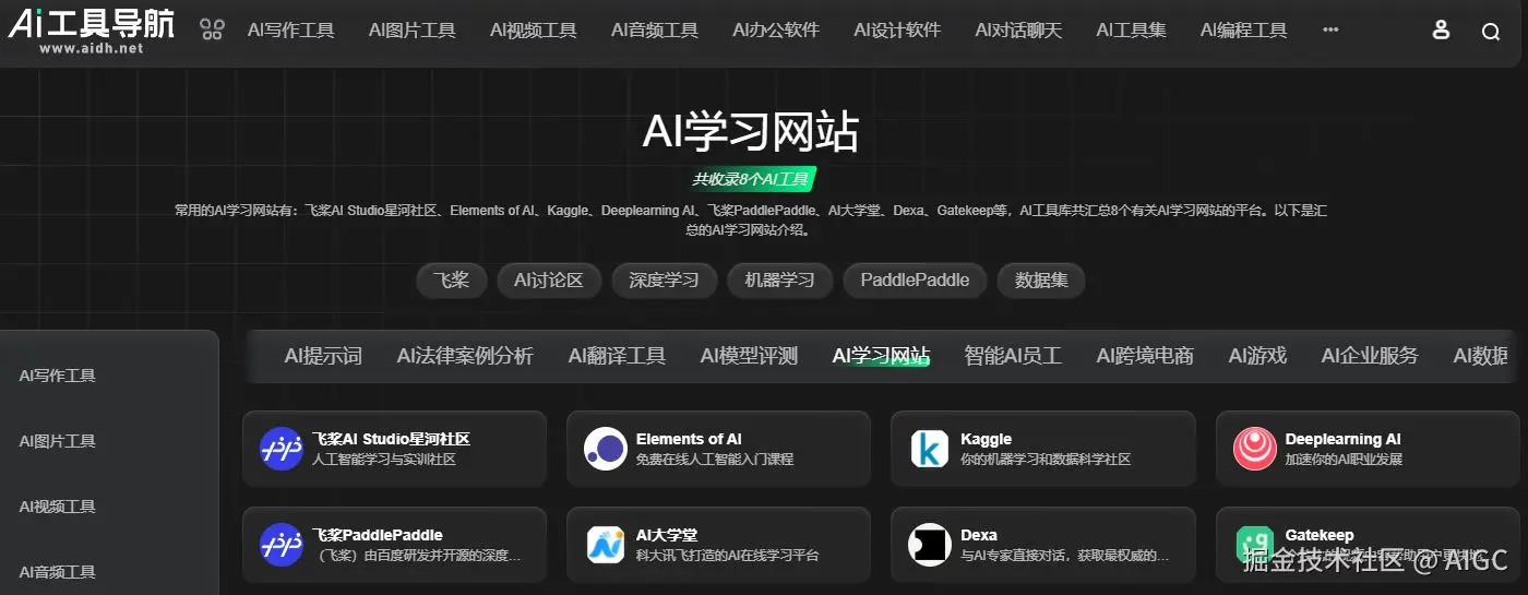 AI工具导航网站( aidh.net/ )的AI学习网站板块,为我们提供了丰富多样的学习资源和途径。无论你处于AI学习的哪个阶段,都能在这里找到适合自己的平台和工具。通过这些网站的学习和实践,我们能够不断提升自己的AI技能,紧跟时代的步伐,在智能时代的浪潮中发挥自己的优势。同时,不要忘记探索AI工具导航网站上的其他相关资源,那里还有更多的惊喜等待着我们去发现。让我们一起踏上AI学习的征程,开启智能未来的无限可能!