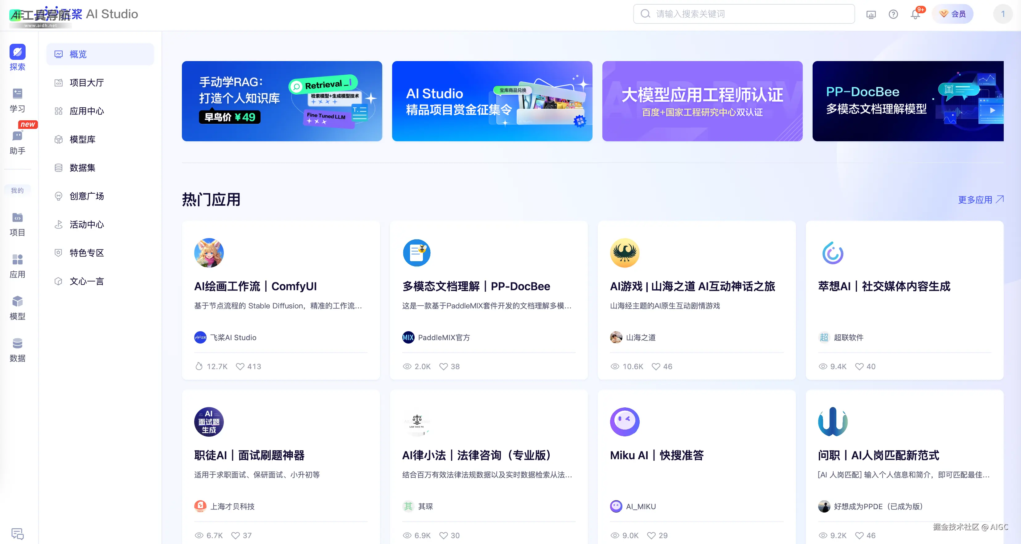 核心功能与特色:作为人工智能学习与实训社区,飞桨AI Studio星河社区为用户提供了全方位的深度学习实践环境。在这里,用户可以免费获取强大的计算资源,无需担心本地设备性能的限制,轻松开展复杂的模型训练和实验。丰富的数据集涵盖了图像、文本、语音等多个领域,无论是进行图像识别项目,还是自然语言处理任务,都能找到合适的数据支撑。同时,活跃的社区氛围促进了用户之间的交流与合作,大家可以分享经验、互相学习,共同攻克技术难题。