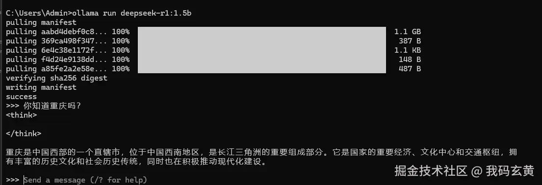 ollama run deepseek-r1:1.5b