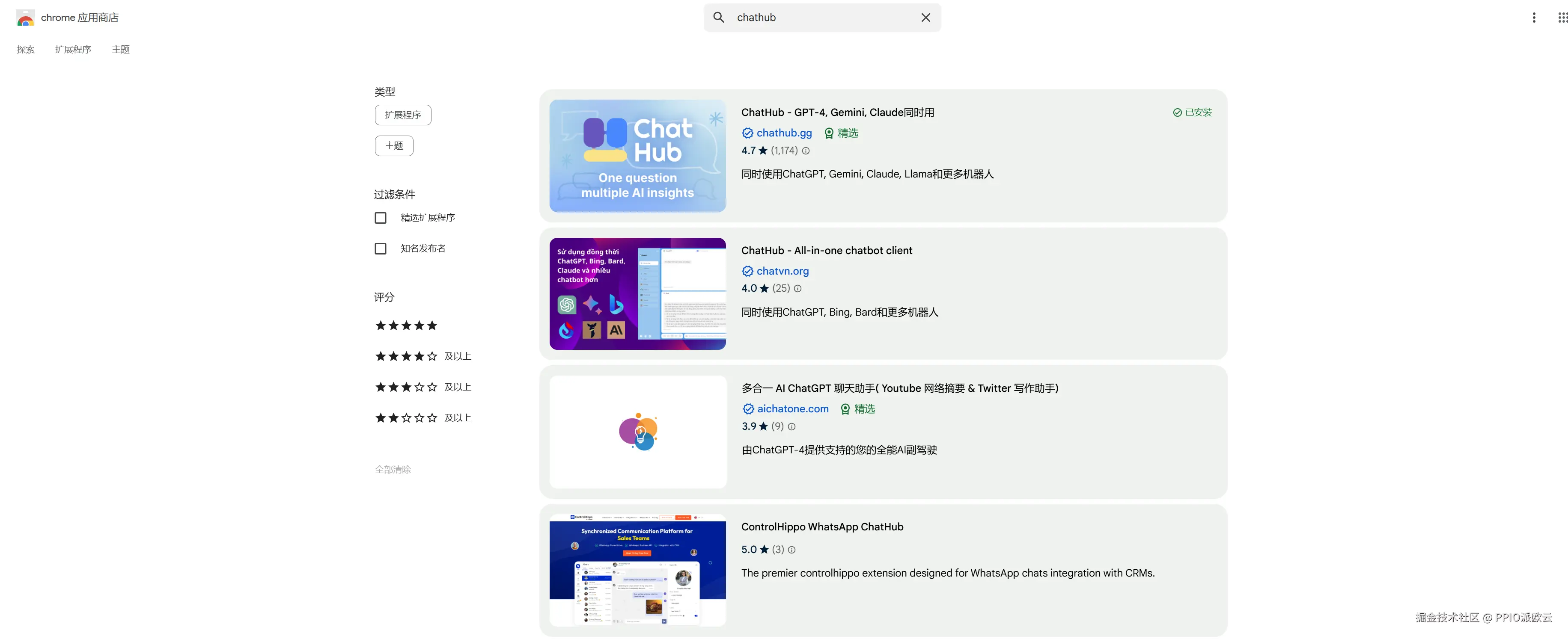 在chrome应用商店下载ChatHub插件