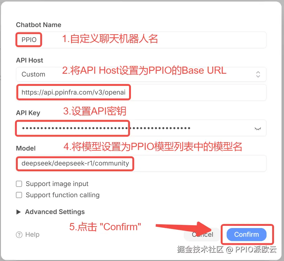 - Chatbot Name: 自定义聊天机器人的名称,比如PPIO