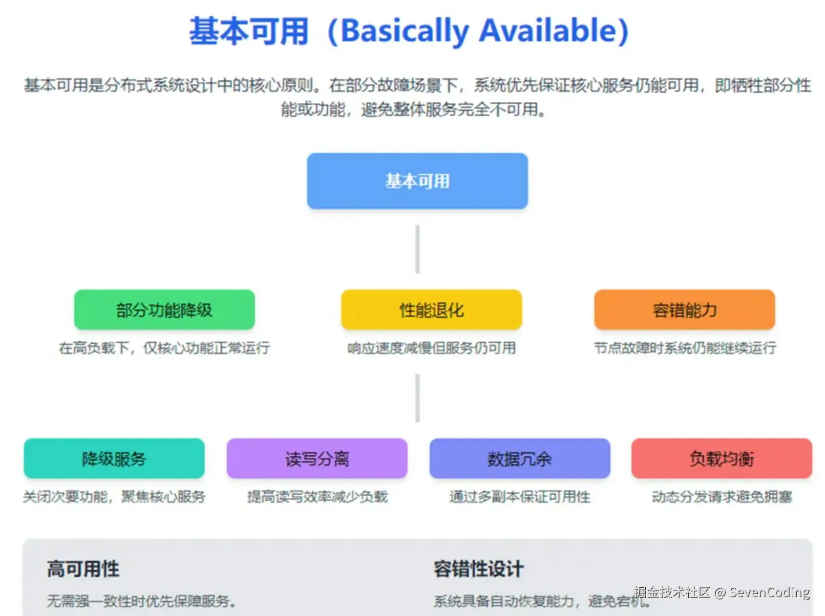 基本可用是指分布式系统在出现不可预知故障的时候,允许损失部分可用性。但是,这绝不等价于系统不可用。