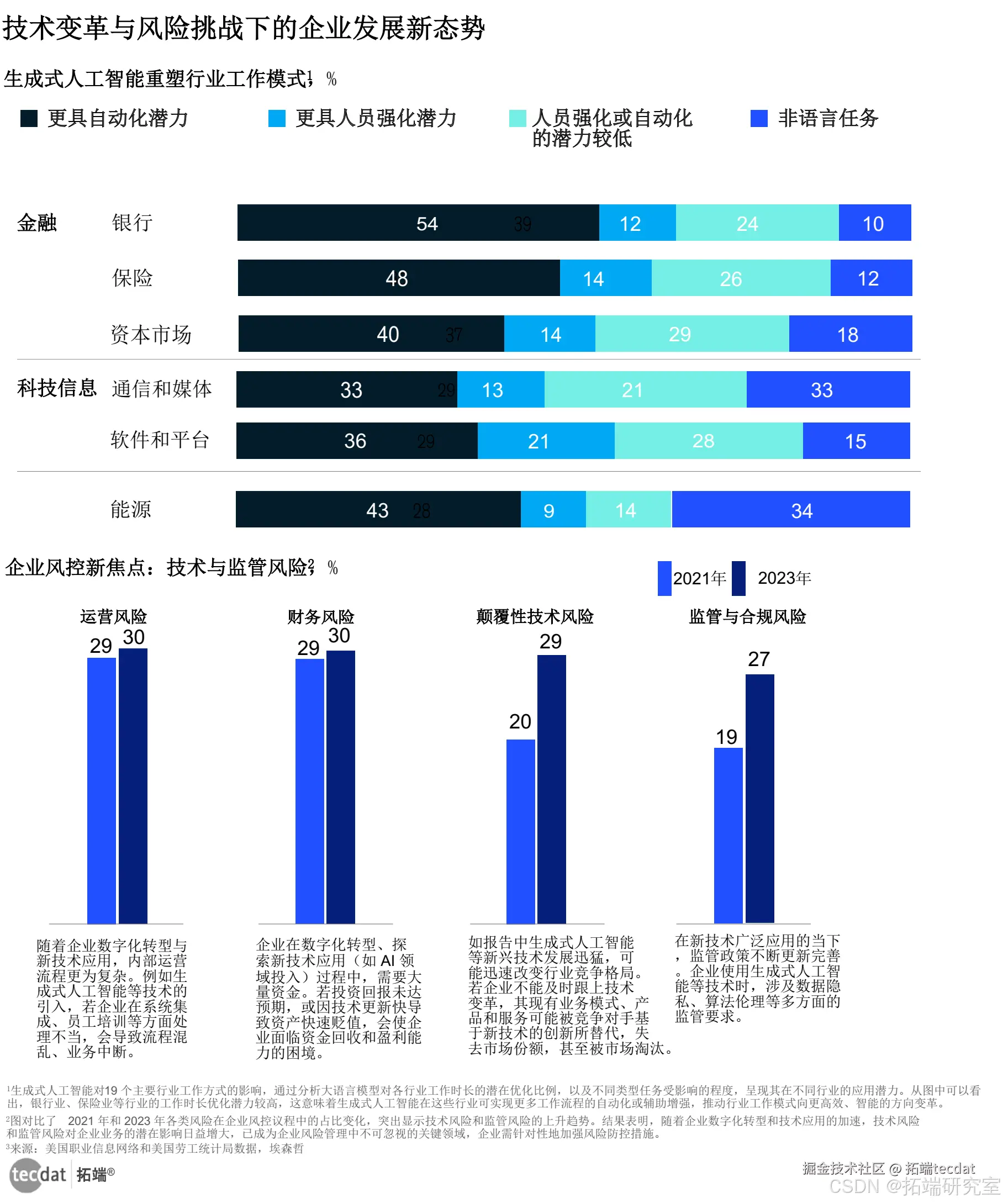 埃森哲研究发现,GenAI有望优化各行业44%的工作时长,在银行业、保险业和资本市场,其工作时长优化比例分别可达72%、68%和67%。例如,数据科学家的部分工作借助GenAI,效率得到显著提升,像处理数字化或在线数据、评估数据质量及准确性等任务可实现自动化或优化增强。这意味着企业能够通过合理运用GenAI,大幅提高工作效率,重塑工作流程与模式。