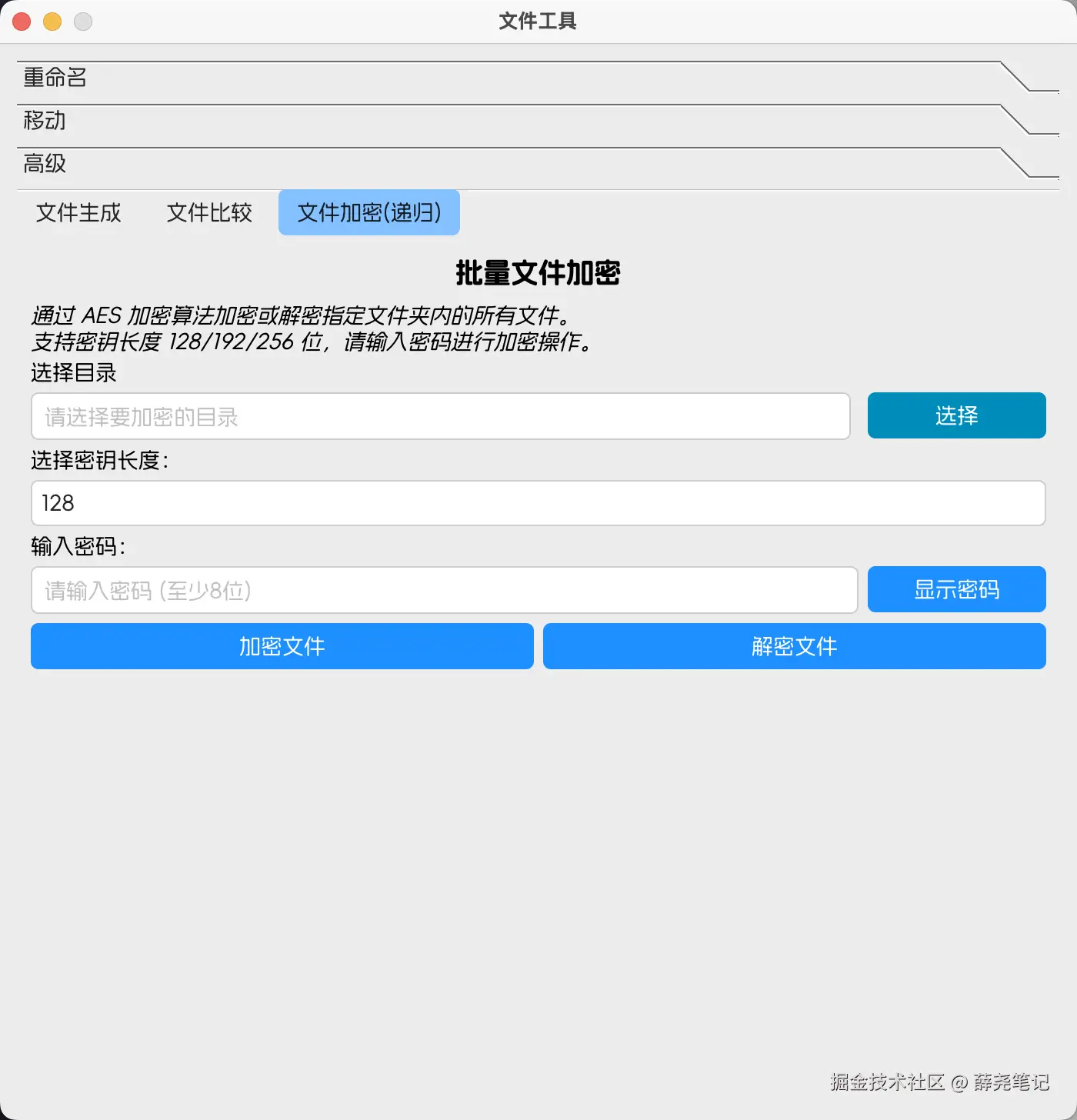 具备重命名文件夹 / 文件、文件生成、文件比较、AES 加密等一系列文件处理功能。