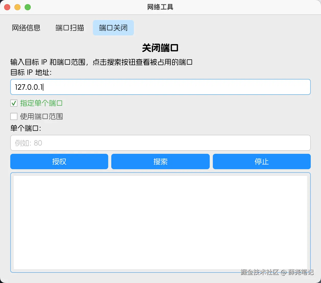 包括端口扫描、干掉端口等功能,其中查询 IP 操作涉及联网请求