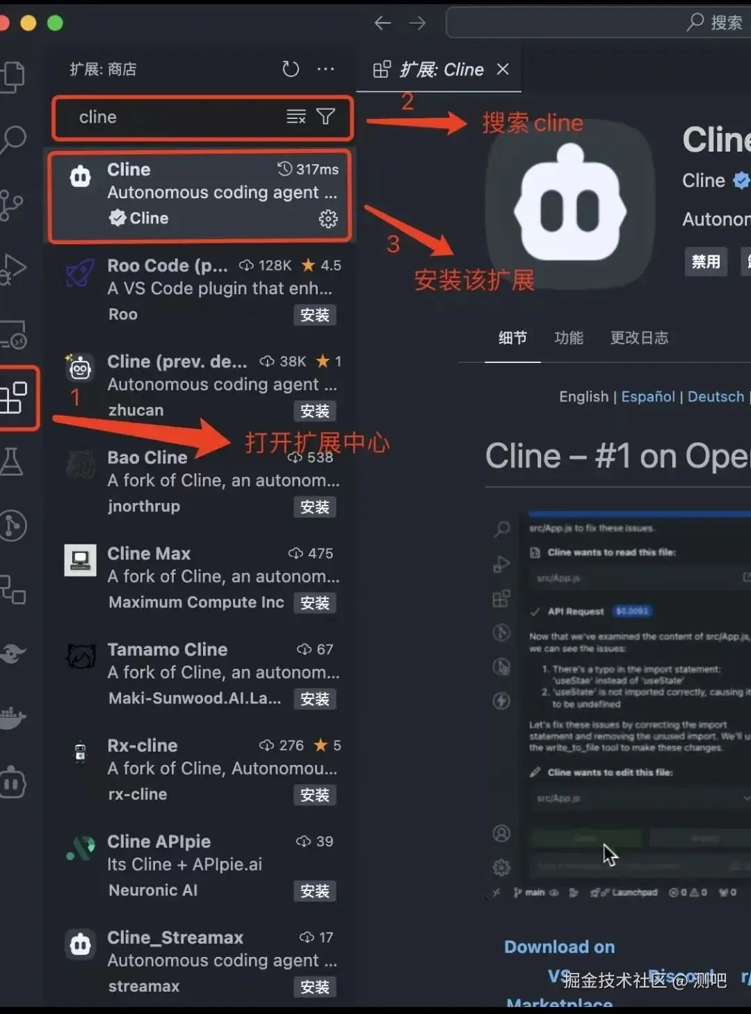 接下来,我们来看看如何在VSCode中安装和配置DeepSeek插件。