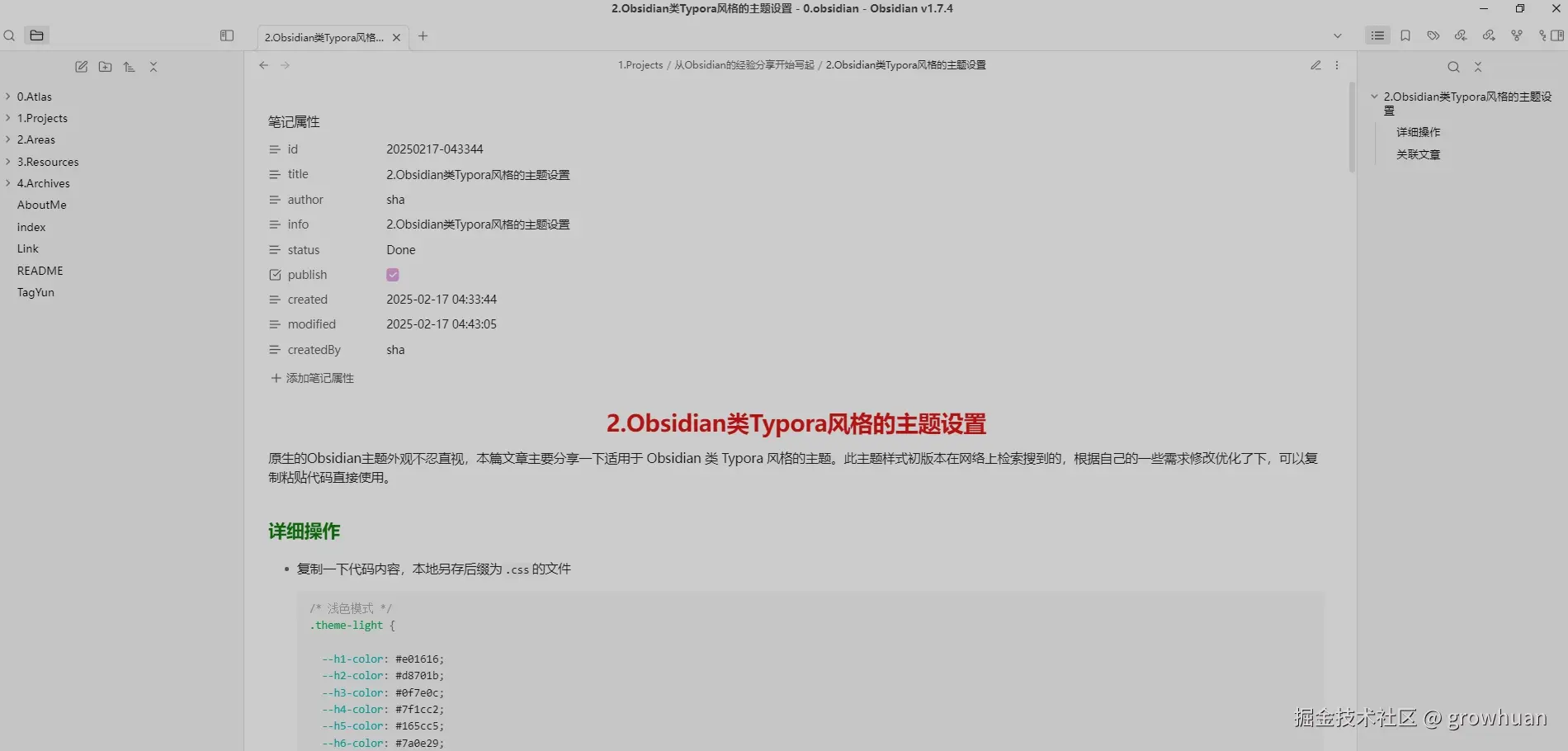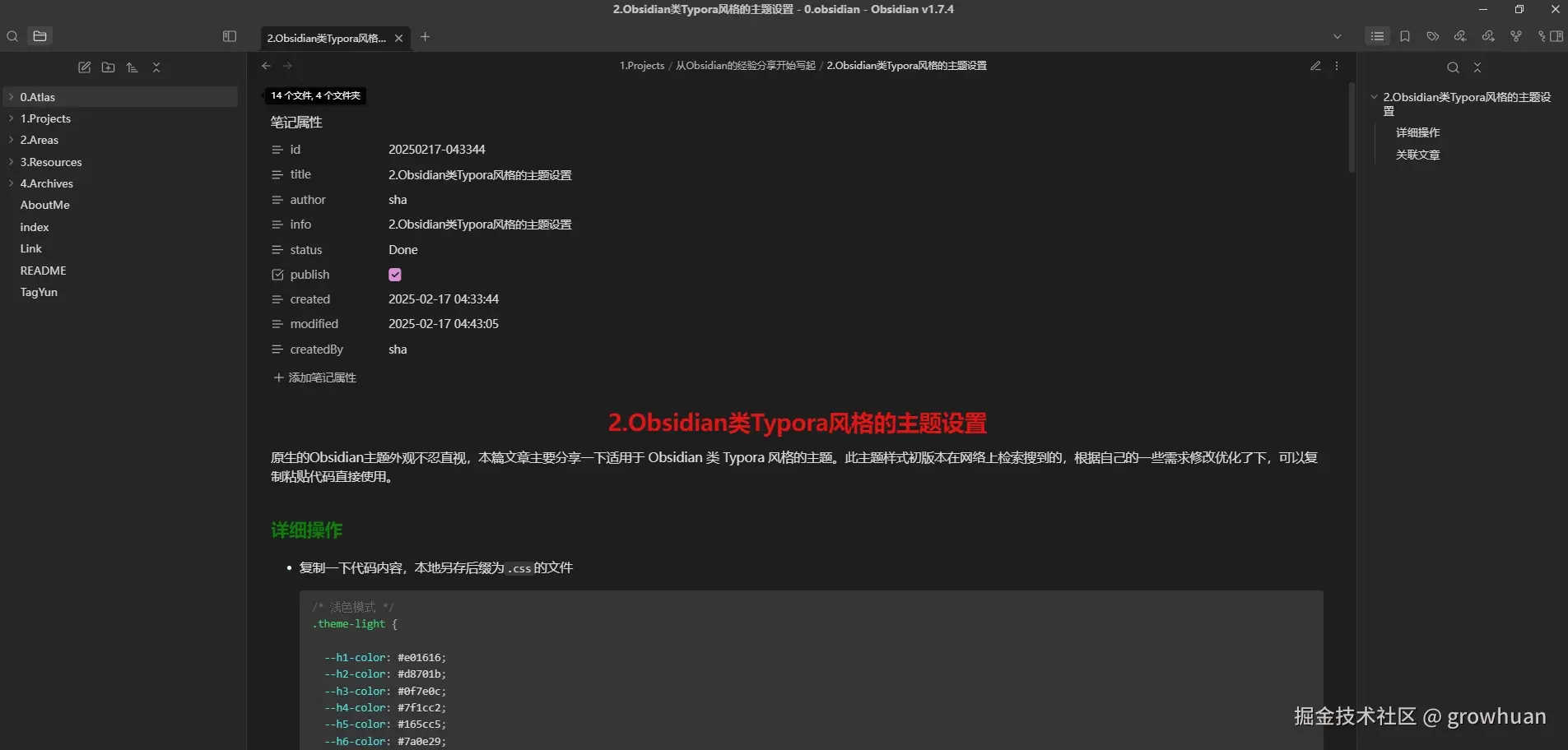 - 原文地址:Obsidian主题篇-类Typora风格的主题设置。