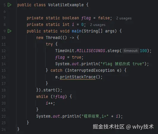 作为一个 Java 开发,遇到这个代码的时候,应该是刚刚入行没多久,还在学习 volatile 关键字的时候。