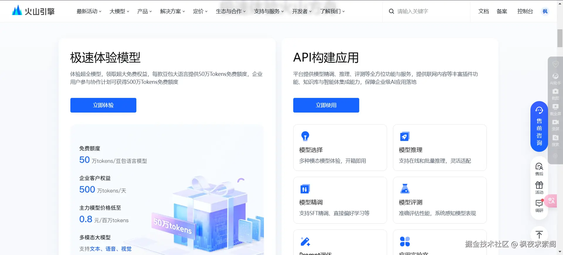 【第一步】材料准备(注册火山引擎平台,领取免费的50万token)