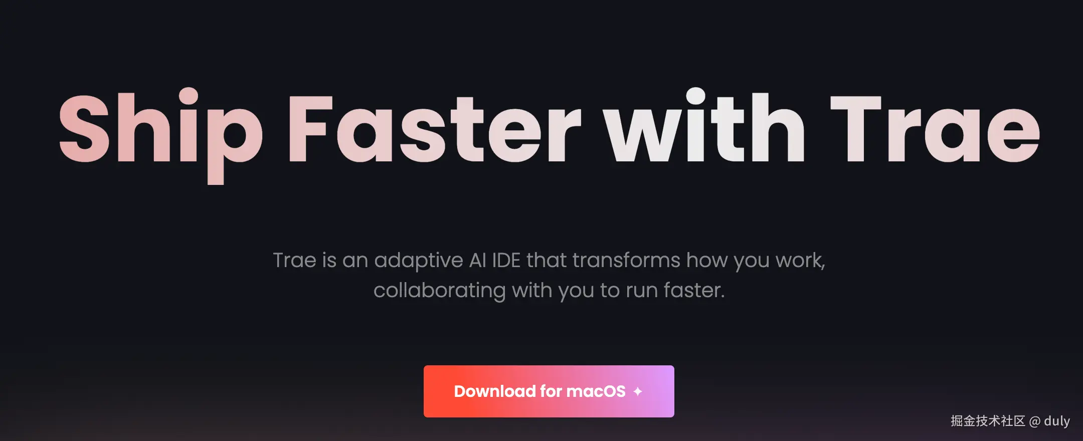 1、访问 Trae 官方网站(www.trae.ai),下载适用于 macOS 的桌面客户端。