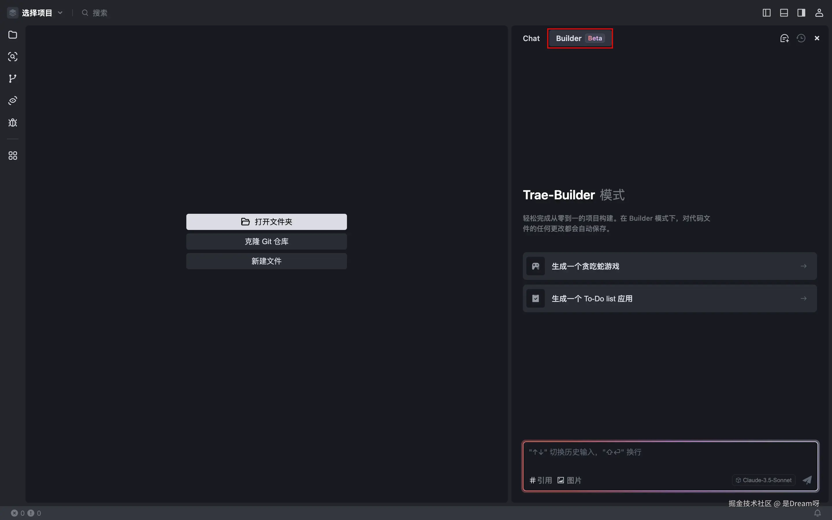除此之外,借助先进的多模式功能,Trae 可以精确理解我们的图像上传,从而简化协作并提高效率。接下来让我们体验一下Builder 模式,看看其能否独立帮助我们完成一整个项目的开发工作。