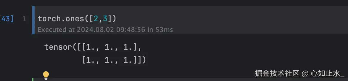 初始化一个大小为指定维度,元素值全为1的张量