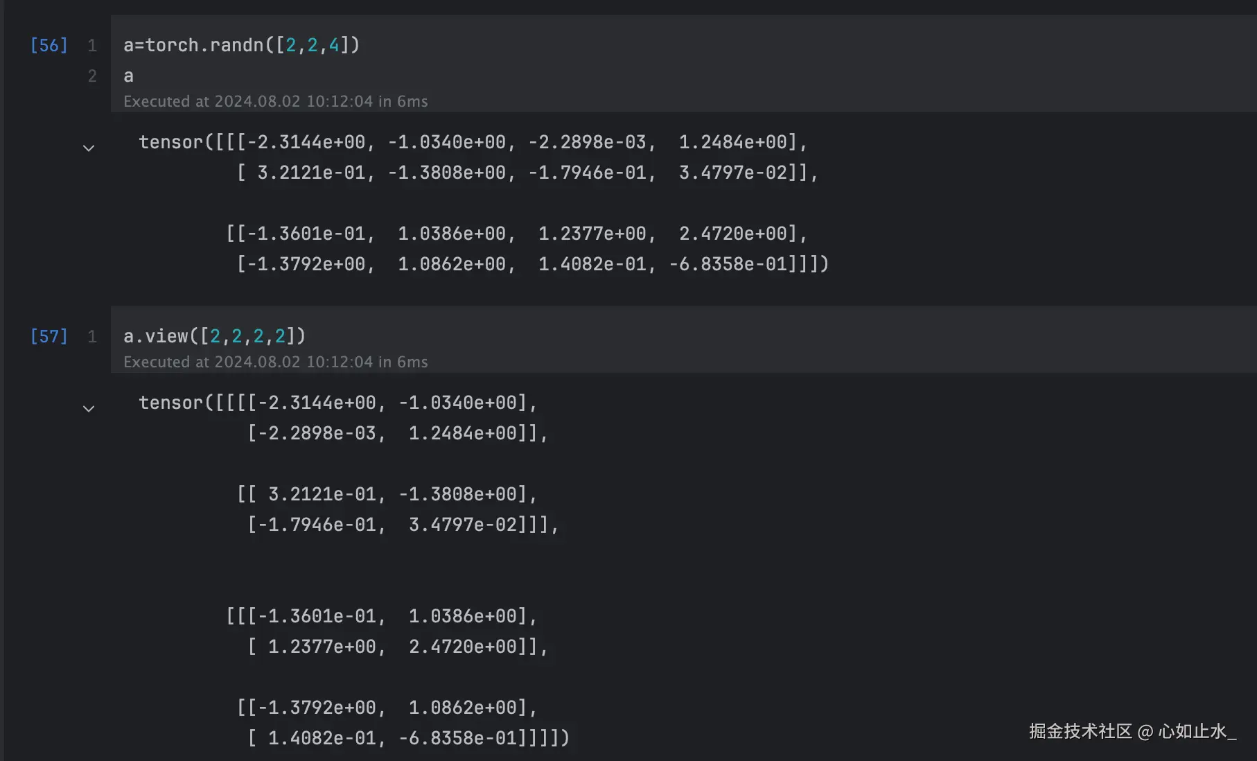 以另外一种维度的布局来看当前tensor,下述例子将原本维度大小为(2,2,4)的张量按照(2,2,2,2)的方式来看
