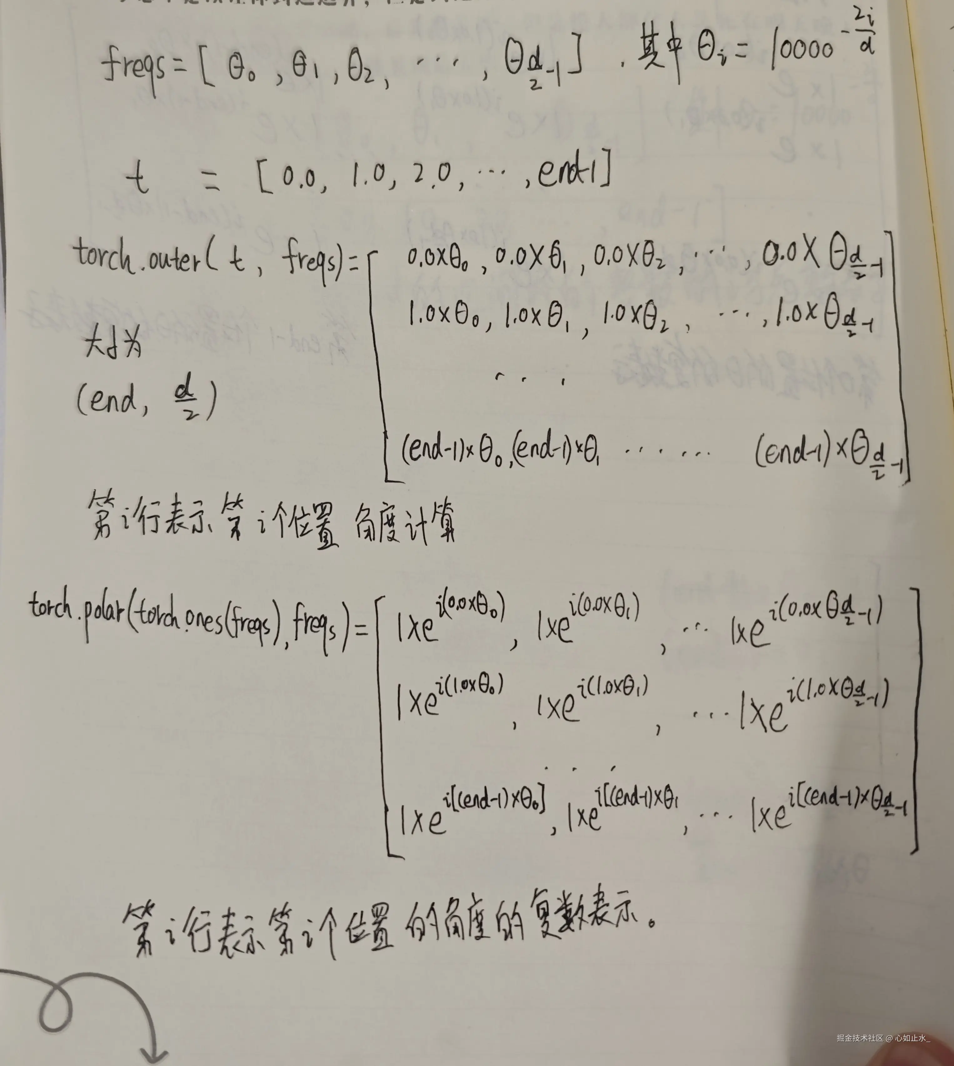 在初始化transformer的时候,也预先计算了rope中用到的角度的复数形式。