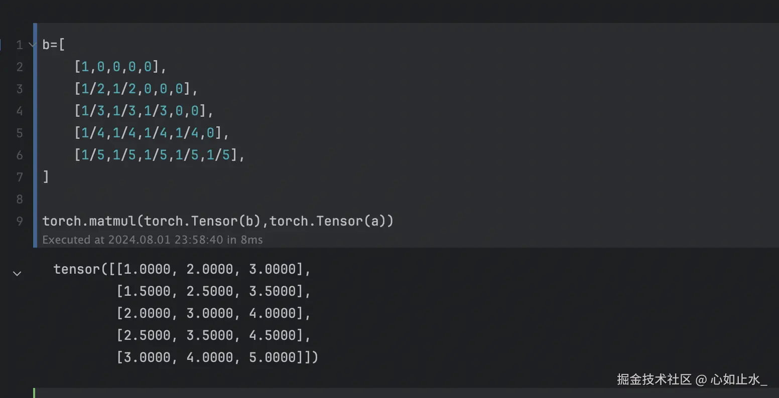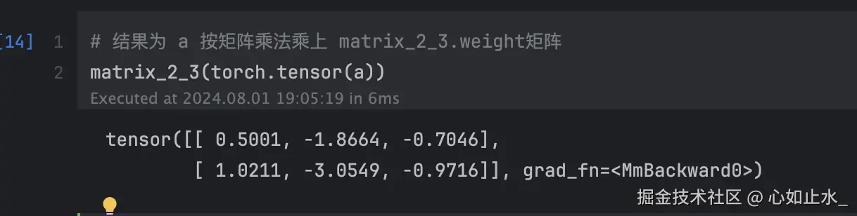 给输入矩阵a乘上matrix_2_3.weight矩阵的结果如下