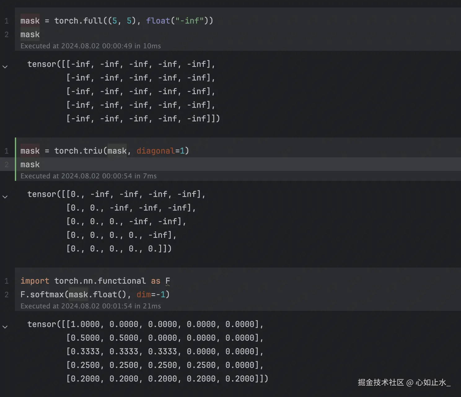 mask = torch.triu(mask, diagonal=1)