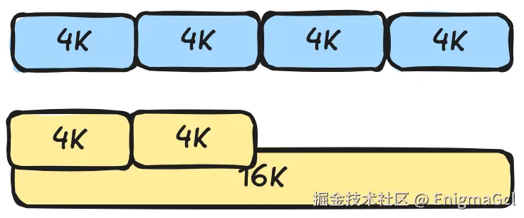 MySQL 一页是 16K,引擎在刷脏调用 pwrite 时,一次是写一整页 16K 的数据,但是有个问题,操作系统只能 4k、4k 的写,如果一次 pwrite 过程中出现写了一半掉电的情况,那么这个页的数据就不能用了,因为页头数据修改了,checksum 对不上,如下: