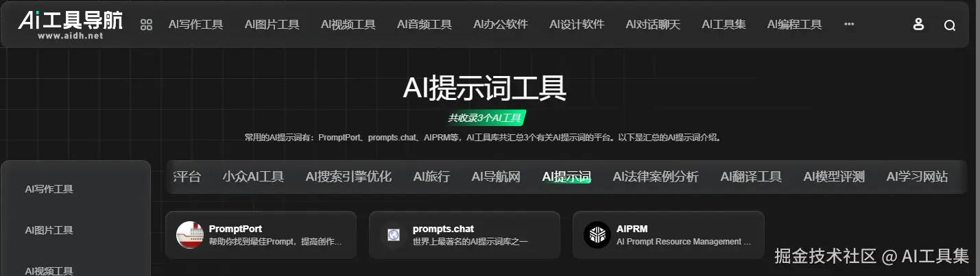 promptport、prompts.chat 和 aiprm 这三款 AI 提词工具各有优劣,适用于不同的编程场景和需求。作为程序员,我们可以根据自己的工作特点和习惯,选择最适合自己的工具。不妨前往 AI 工具导航( aidh.net/tools/aitis… ),亲自体验一下这三款工具,相信它们会给你的编程工作带来意想不到的便利和提升。期待大家在评论区分享使用这些工具的心得和体会!