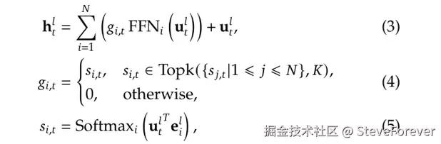 在方程 (3) 中,稀疏 值用于选择 K 个专家来计算输出隐藏状态。