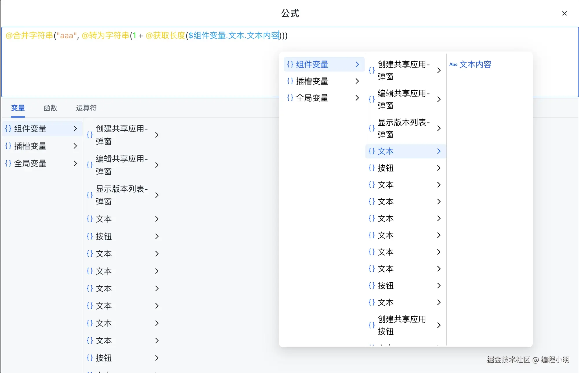 低代码平台的页面引擎,页面中有许多的变量,用户可通过公式组合这些变量,以获得想要展示的结果。例如:变量中有某个时间,则可以通过公式来输出时间的显示格式,仅需配合一个格式化时间的函数,即可获得多种输出格式