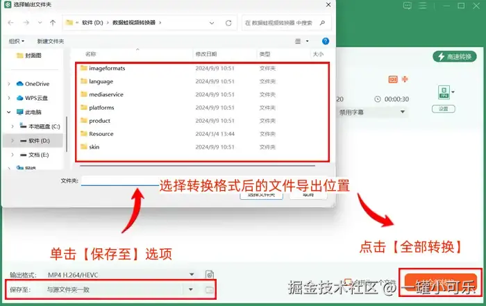 步骤3:返回格式转换界面上,单击【保存至】选项,选择转换格式后的文件导出位置,最后点击【全部转换】即可。
