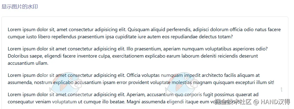借助 getContainer 属性,能够精准指定水印的渲染容器,满足多样化的布局需求。 例如:在界面局部敏感信息,仅文档渲染部分添加水印。