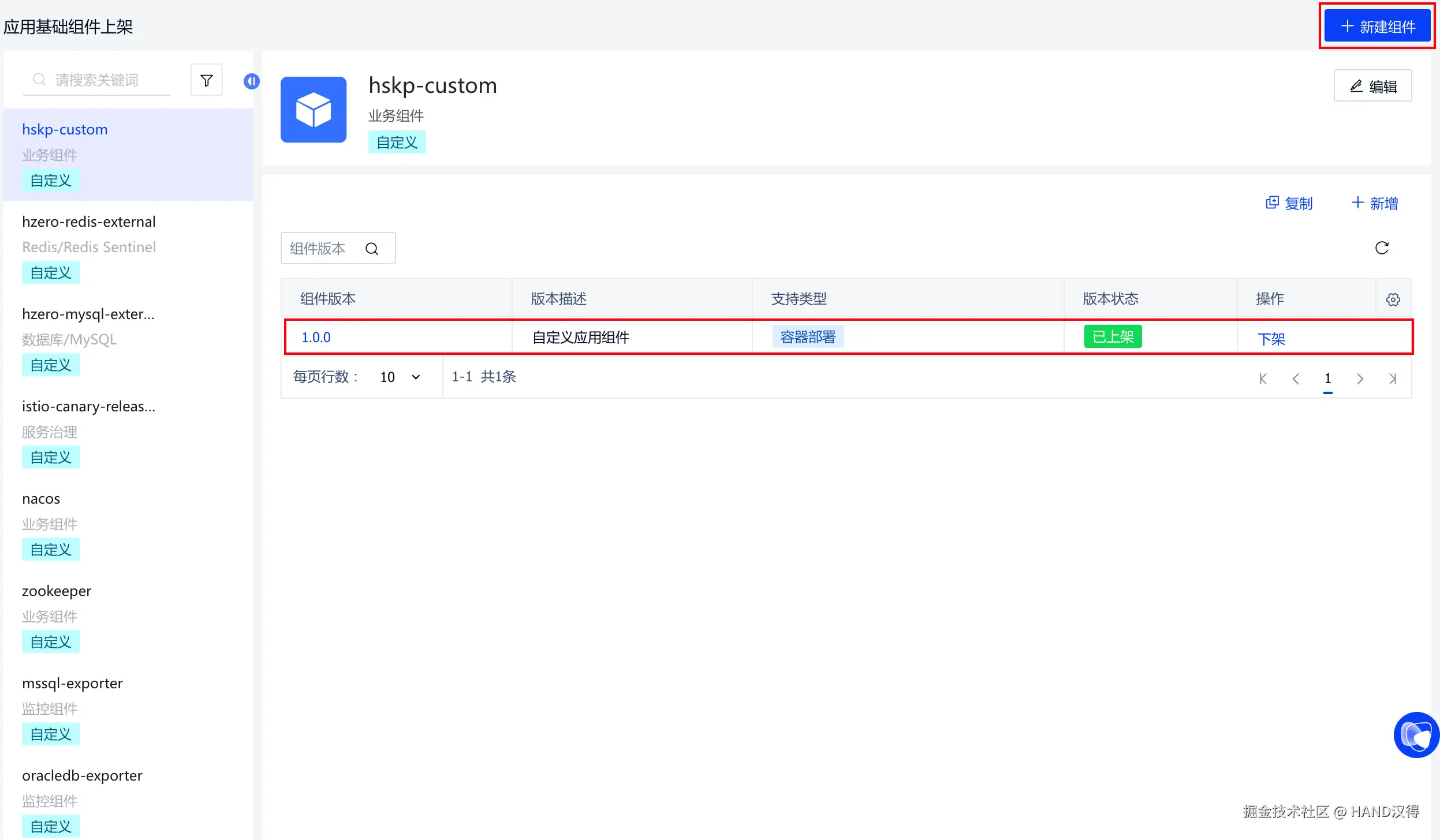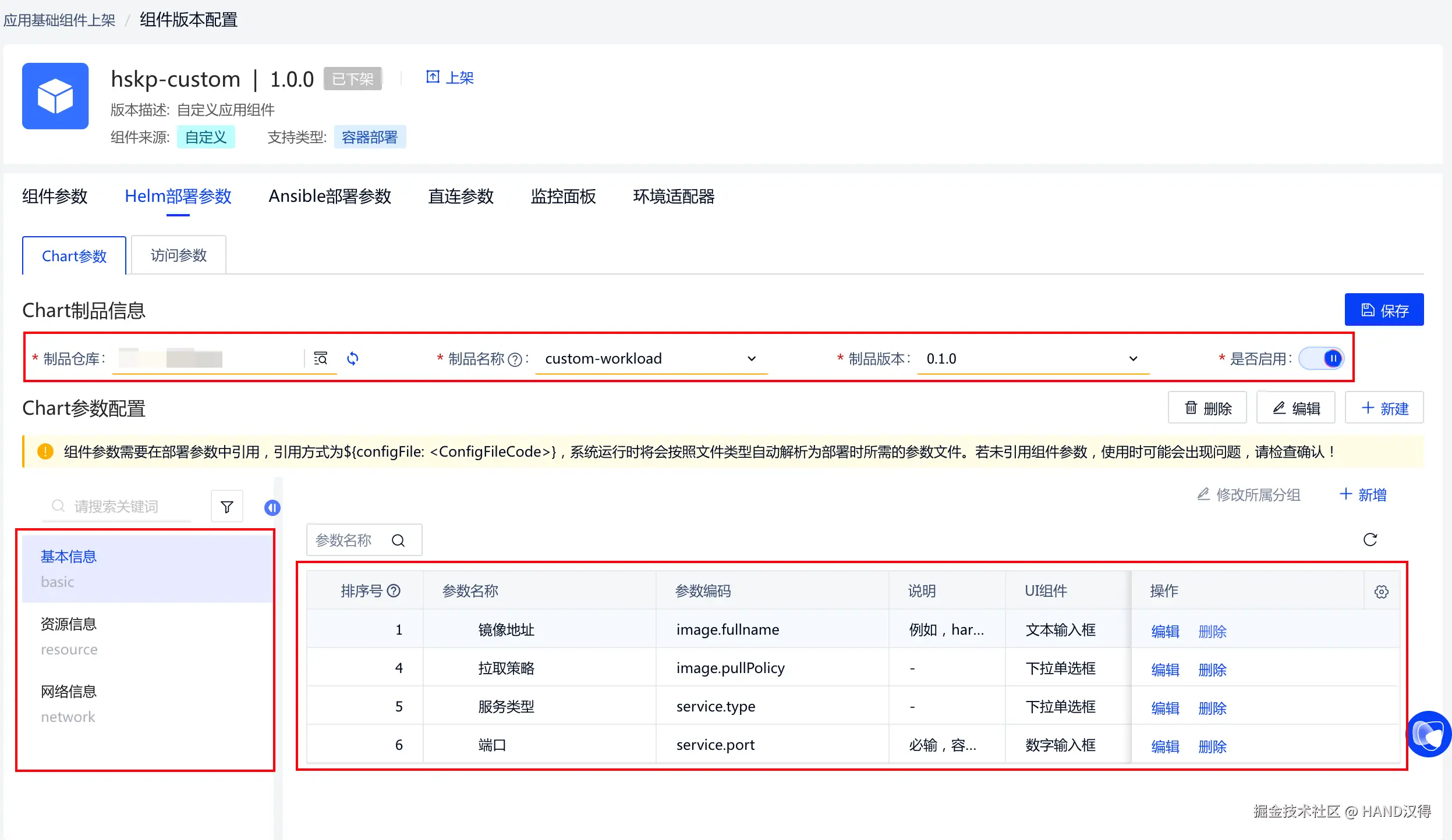 应用管理/应用上架/应用基础组件上架: