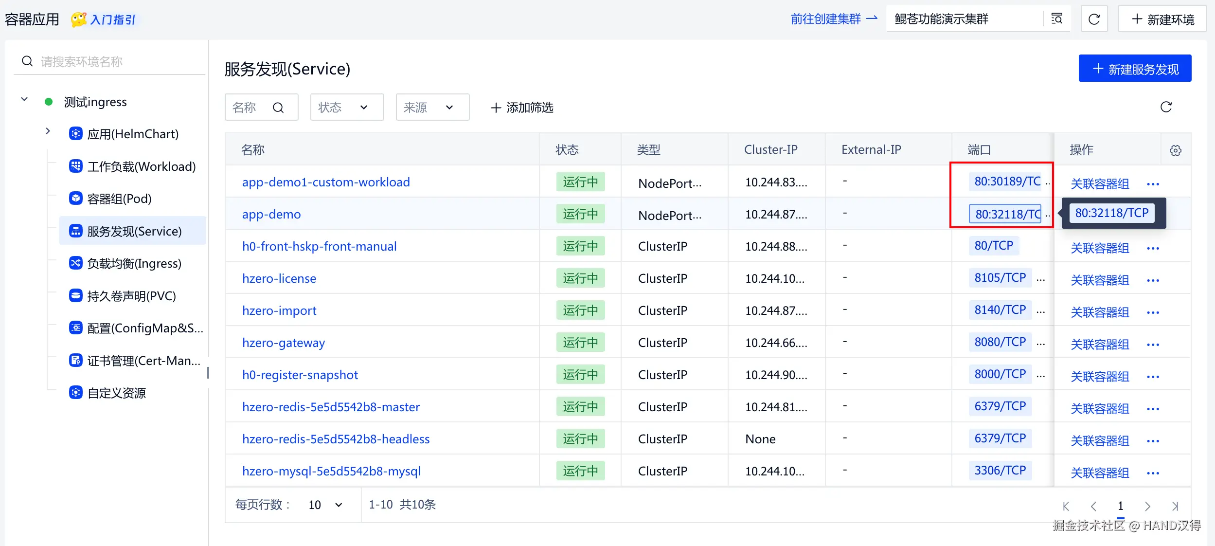 我们如上部署时选择了NodePort,系统自动帮我们创建了NodePort类型的服务发现资源,可直接通过NodePort访问