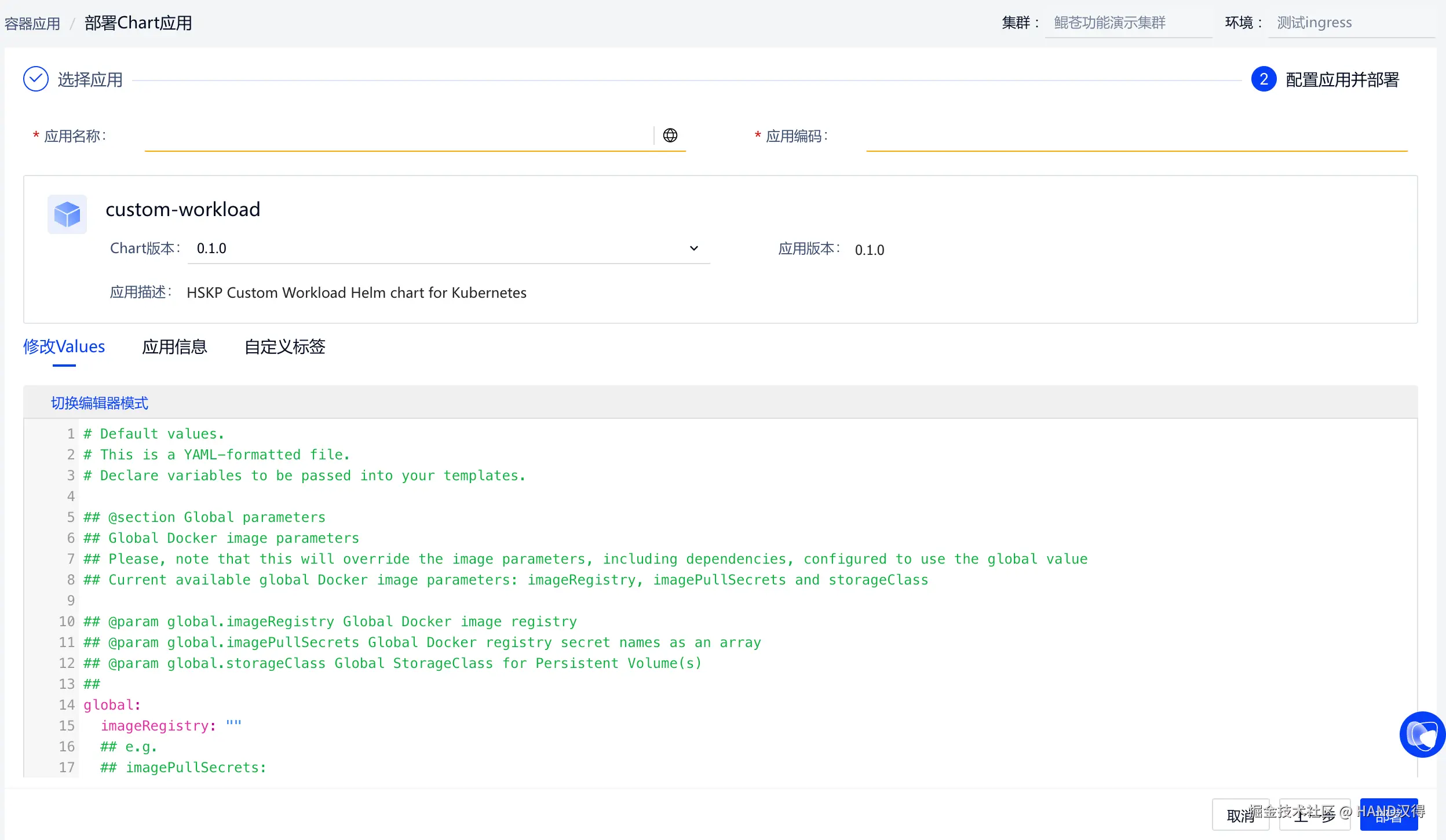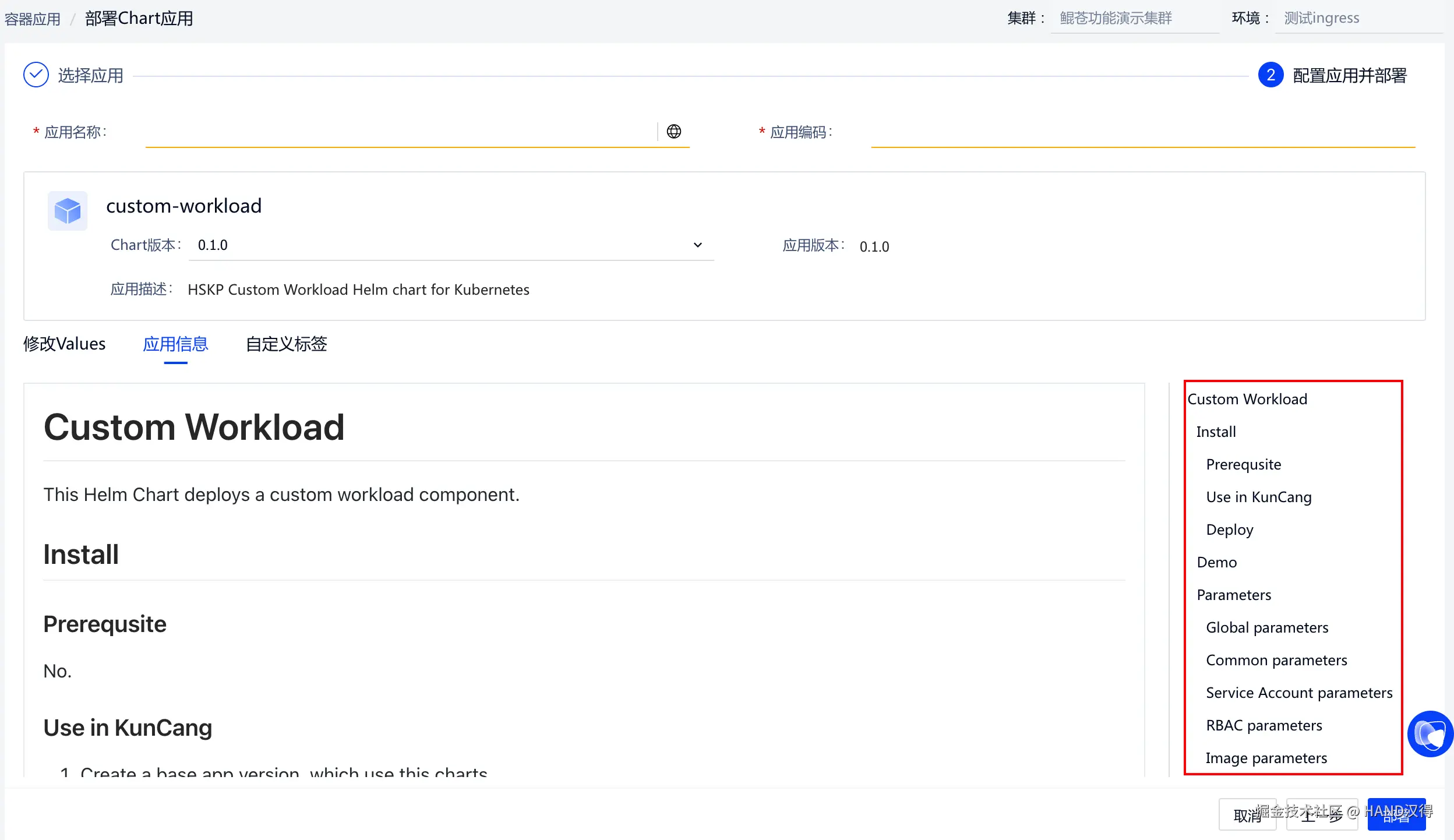 部署Chart应用,原生Helm Chart方式部署,可更细粒度精准控制更多参数信息