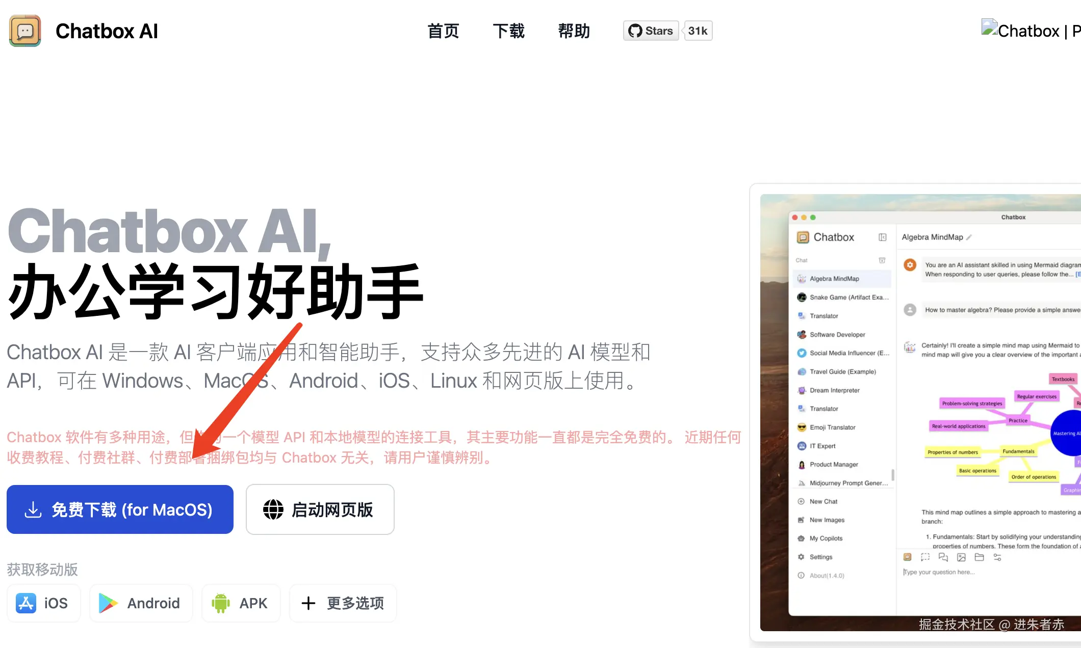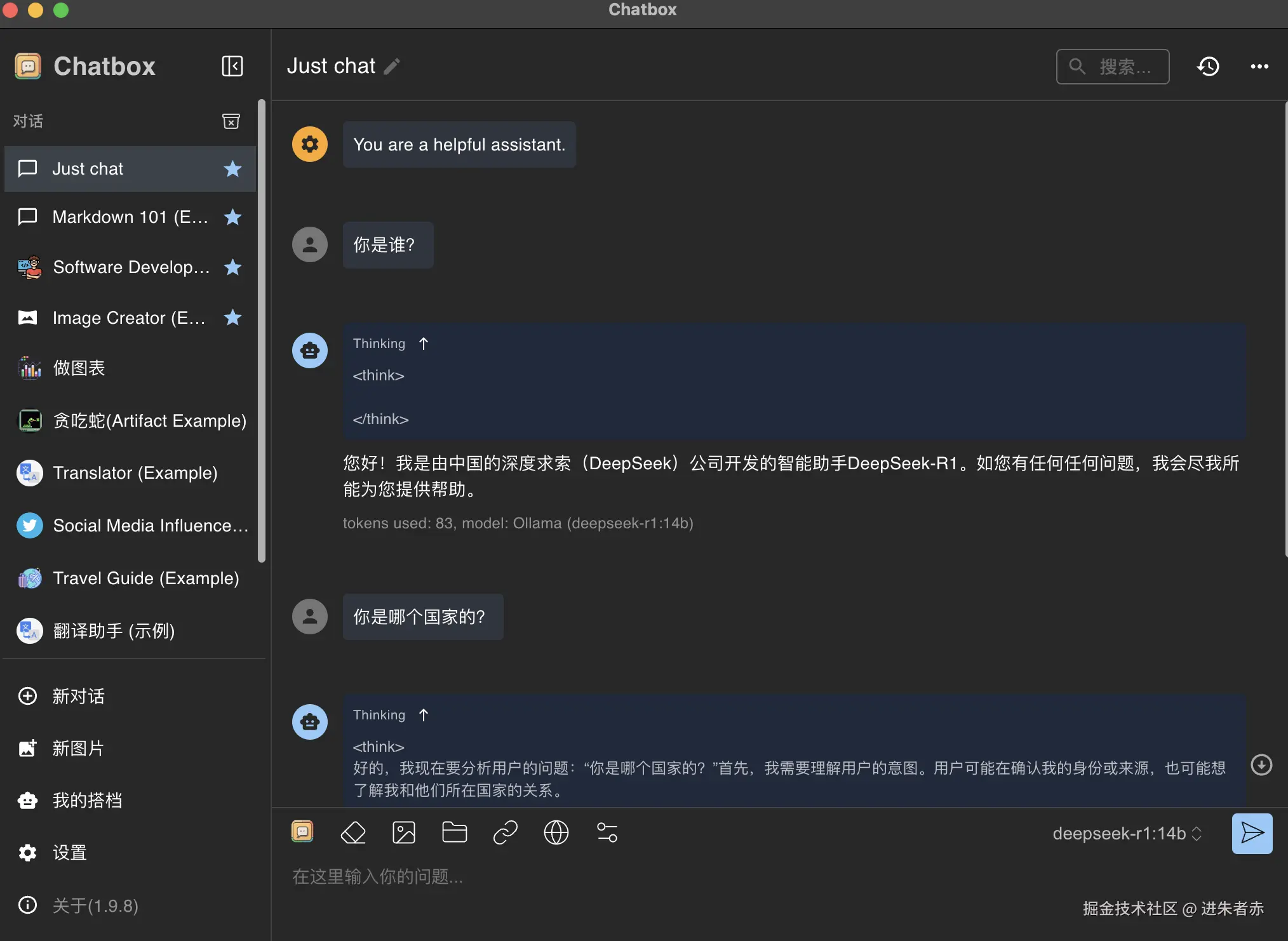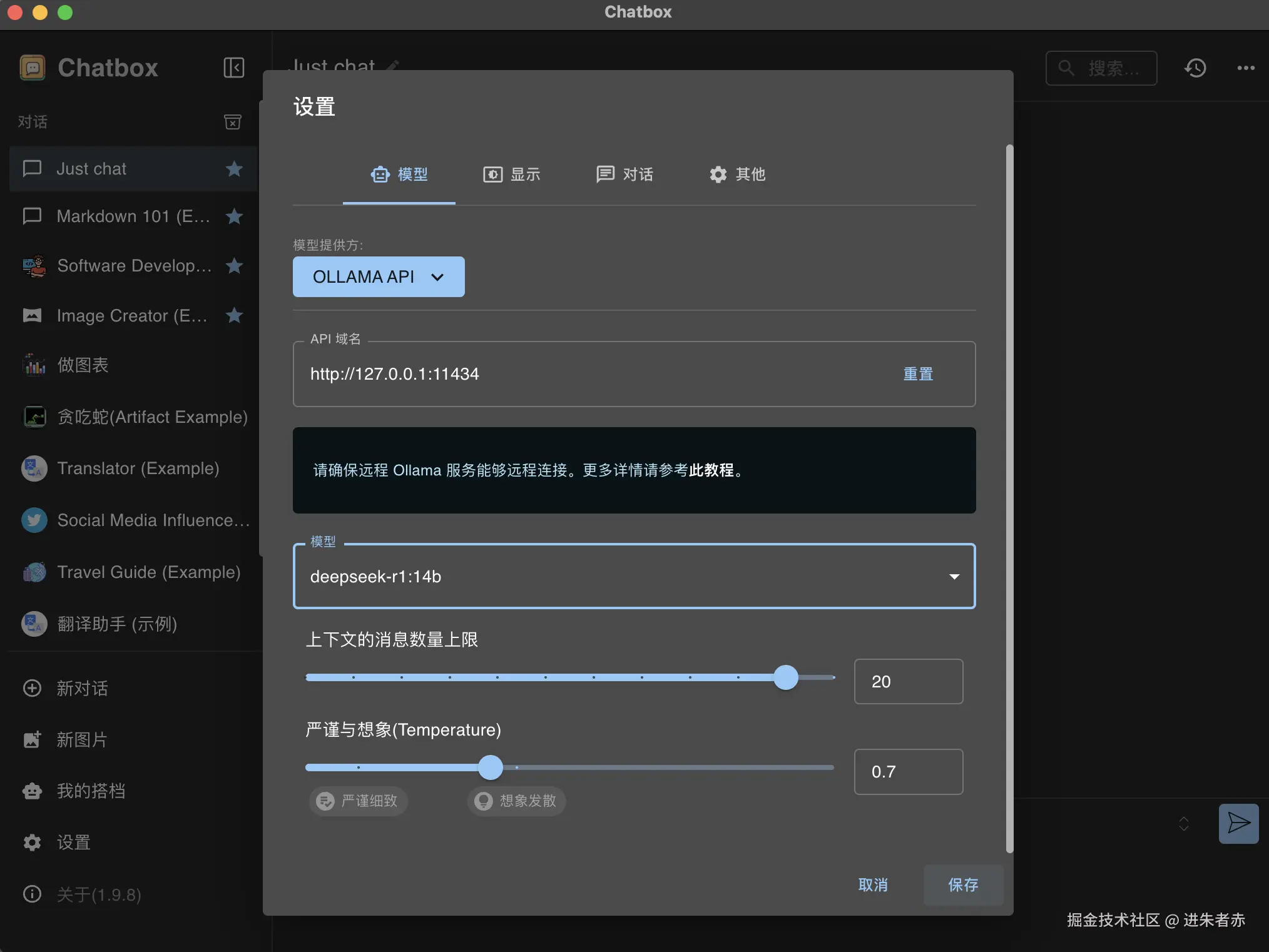 - Chatbox: AI可视化工具 后续的问答将从这里的窗口进行,官方网址:chatboxai.app/zh