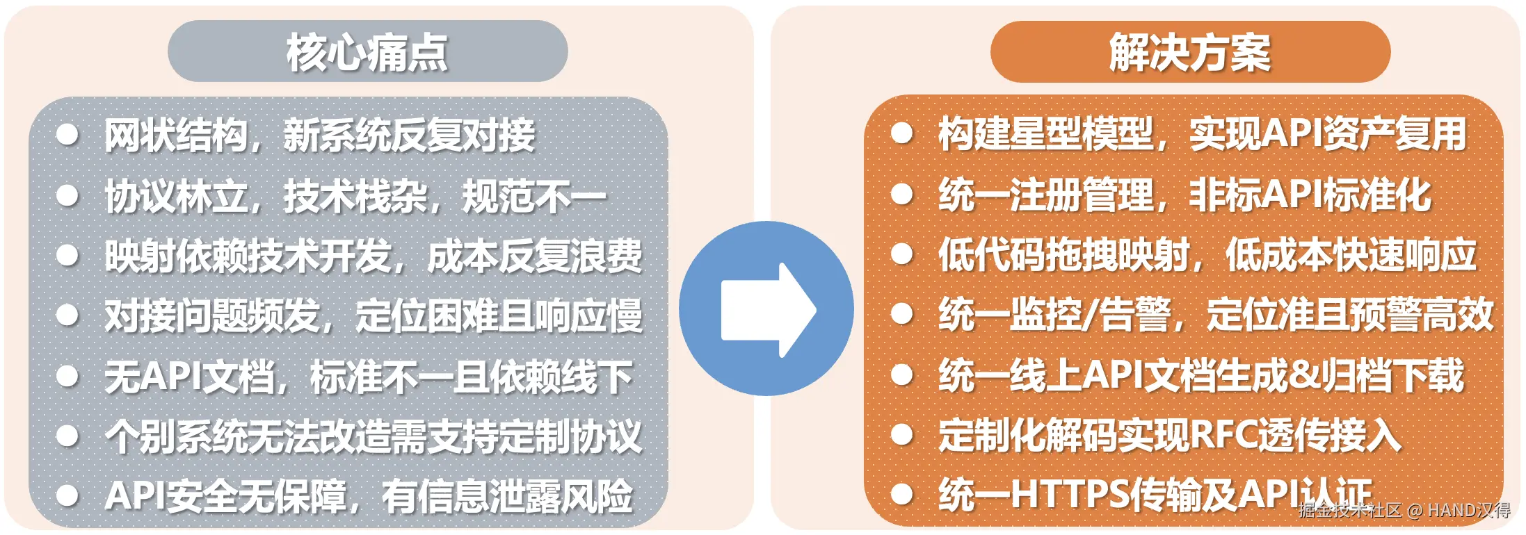 客户系统集成面临诸多挑战,包括网状架构导致的复杂对接、协议标准不统一、对接问题频发、安全风险较高等。这些问题在一定程度上影响了系统的稳定性、维护成本及业务响应效率。