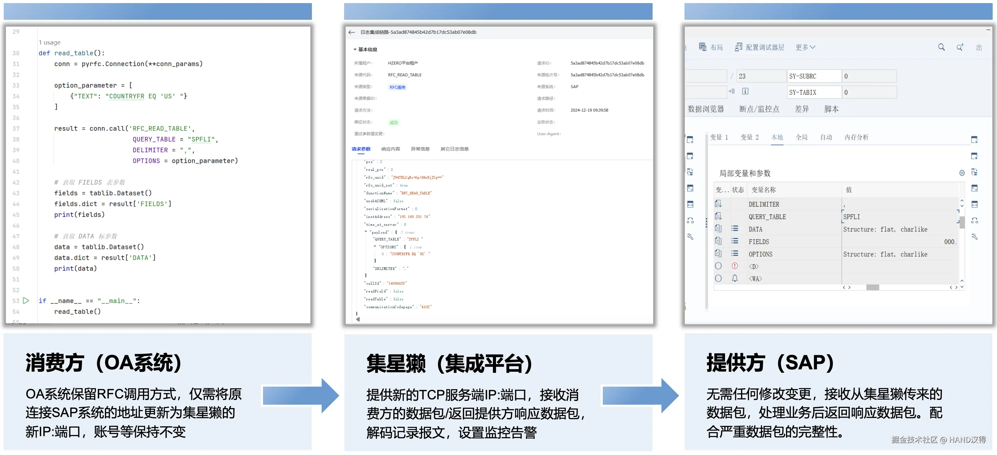 部署新功能验证后,在客户环境实现了OA系统的RFC直接透传,OA系统以最小的成本接入了集成平台,实现了原协议集成不变更、透传调用&日志记录&监控预警统一由集成平台管理。