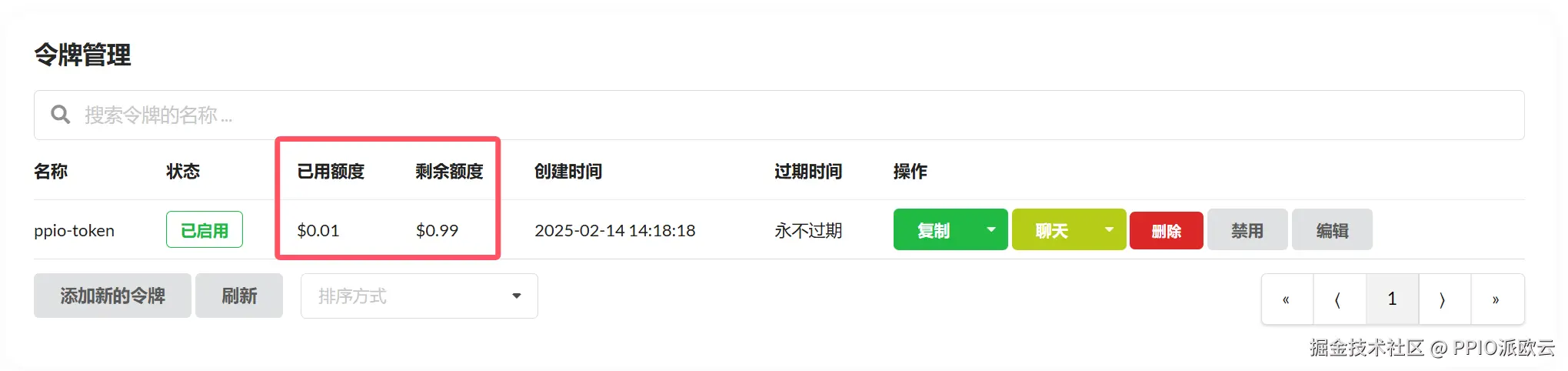回到OneAPI界面查看额度,可以发现额度已经使用了一部分