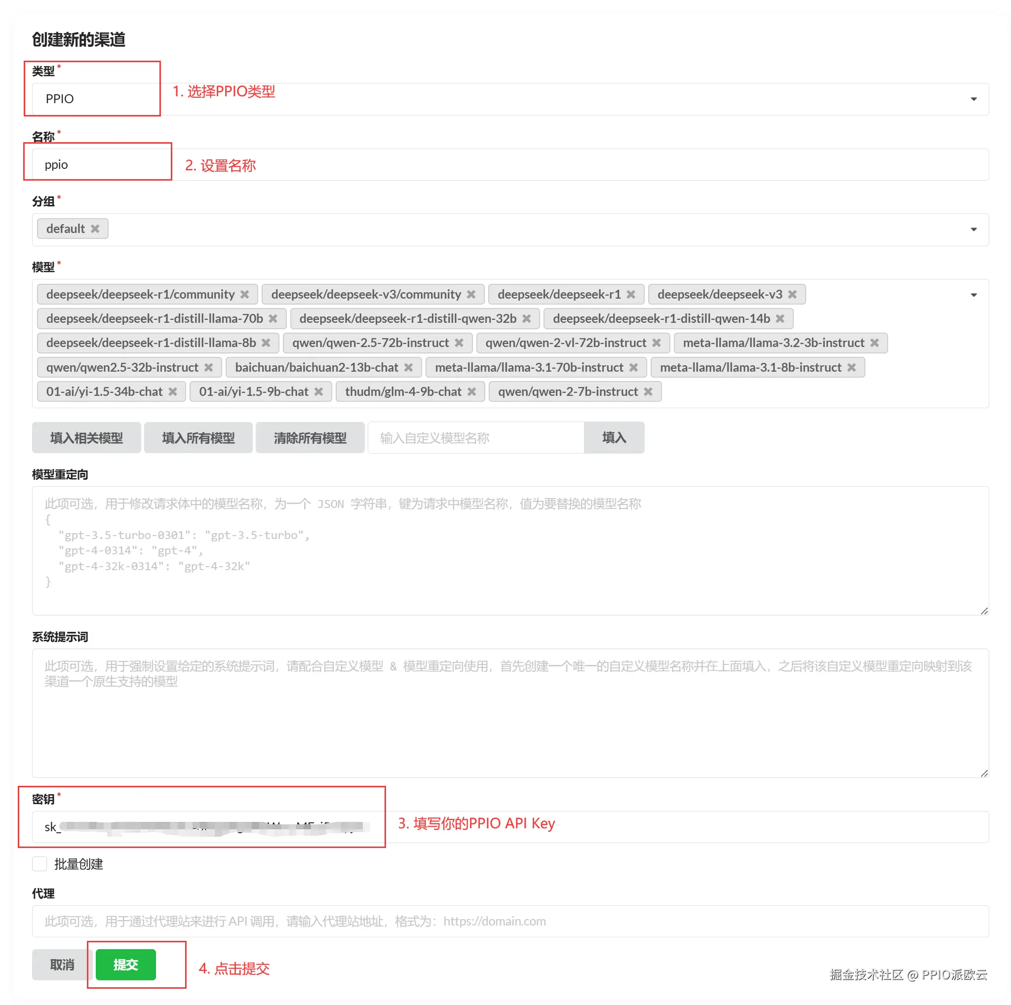 (2) 新建PPIO渠道