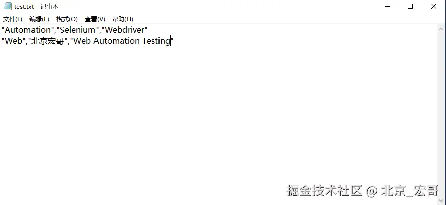 3.桌面制作一个test.csv文件,打开一个记事本,输入如下格式和内容: