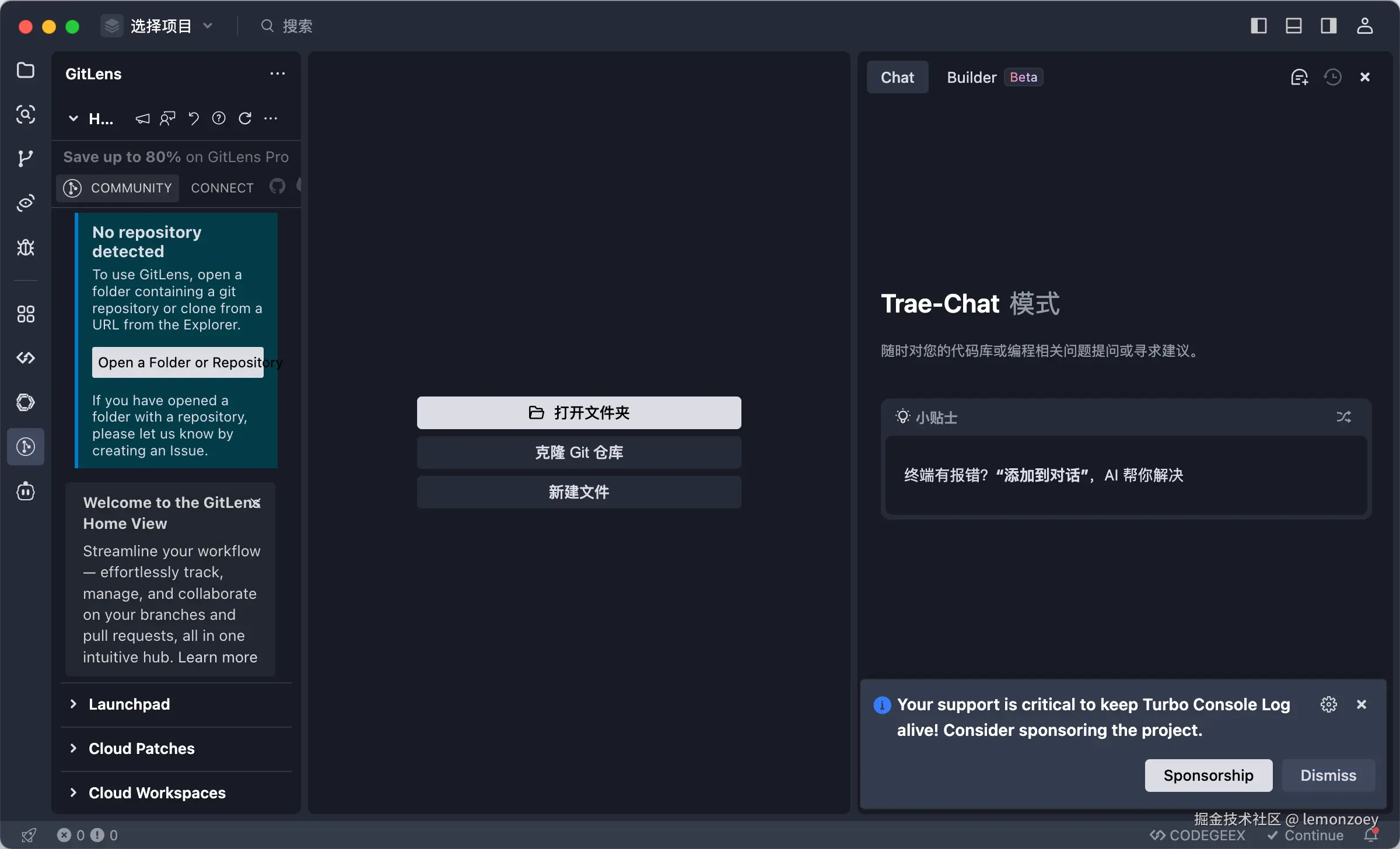 - 原生中文支持:界面、交互逻辑、AI 对话均为中文设计,无需额外插件,降低中文开发者使用门槛;