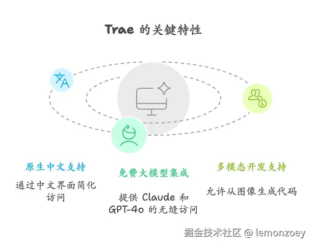Trae 是字节跳动推出的AI 原生化集成开发环境,定位为“真正的 AI 工程师”(The Real AI Engineer),目标是通过 AI 能力降低编程门槛,实现从需求描述到完整项目的端到端开发。其核心亮点包括: