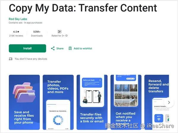 选择手机传输应用时要谨慎,因为市场上有许多恶意应用。幸运的是,我们仍然有许多可靠的选项,例如iReaShare Phone Transfer,它可以帮助你在手机之间传输数据,而不会丢失数据或出现广告。使用它,你可以体验到愉快的数据迁移。此外,你还可以尝试其他无需安装在电脑上的数据传输应用,这些应用不如前者稳定。简而言之,根据你的需求选择一个合适的工具。