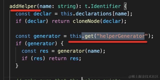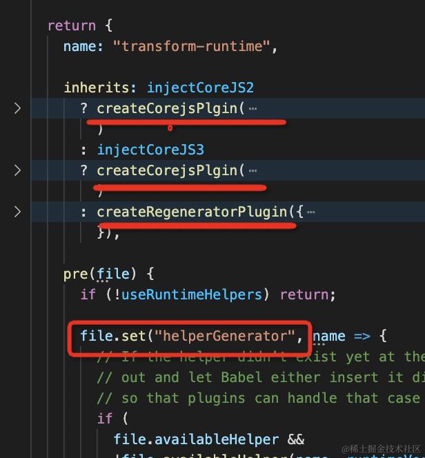 并且还设置了一个 helperGenerator 的函数到全局上下文 file,这样后面 @babel/preset-env 就可以用它来生成 helper 代码。那自然也就是抽离的了。