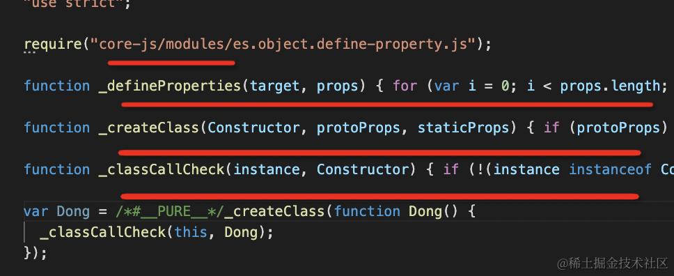 因为 helper 方法里用到了 Object.defineProperty 的 api,这里也会从 core-js 里引入。