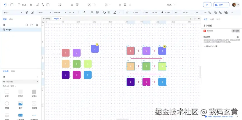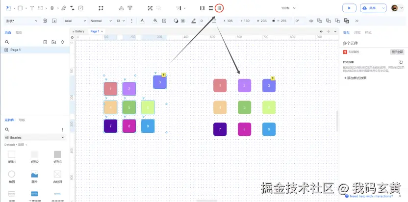 Axure 11 提供了一种新的布局方式,叫【栅格布局】``(Ctrl+Alt+G),可以使选中的元件按照网格进行整齐排列。