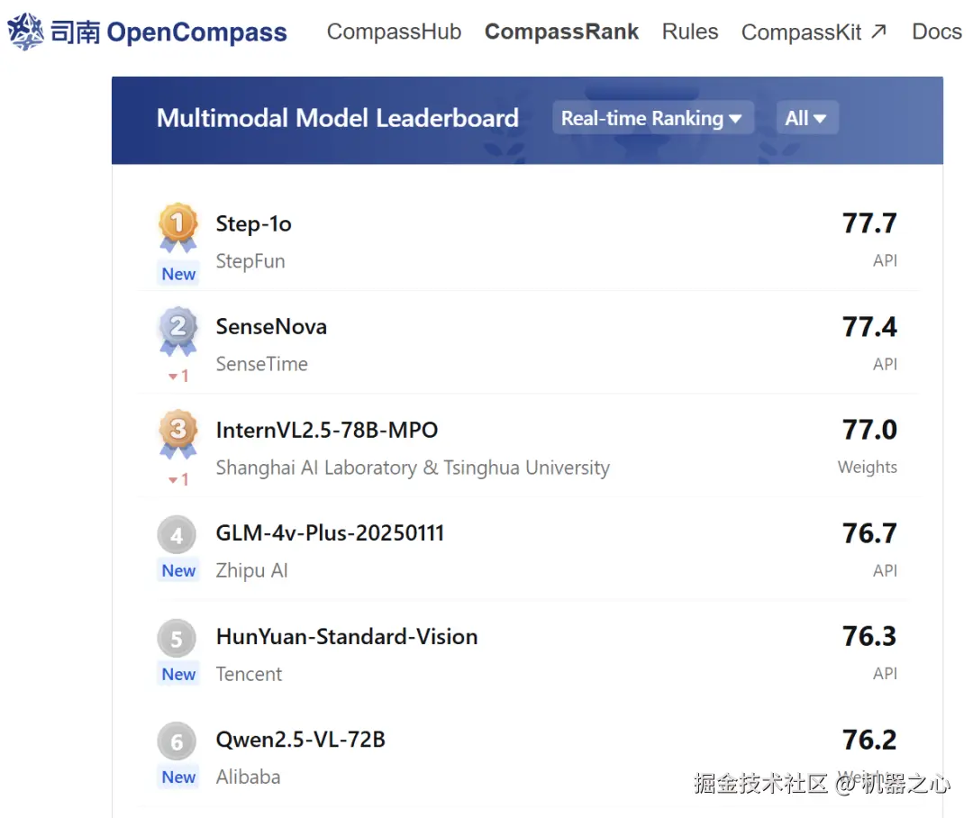 在 OpenCompass 多模态模型评测实时榜单上,Step-1o 大模型名列业内第一。