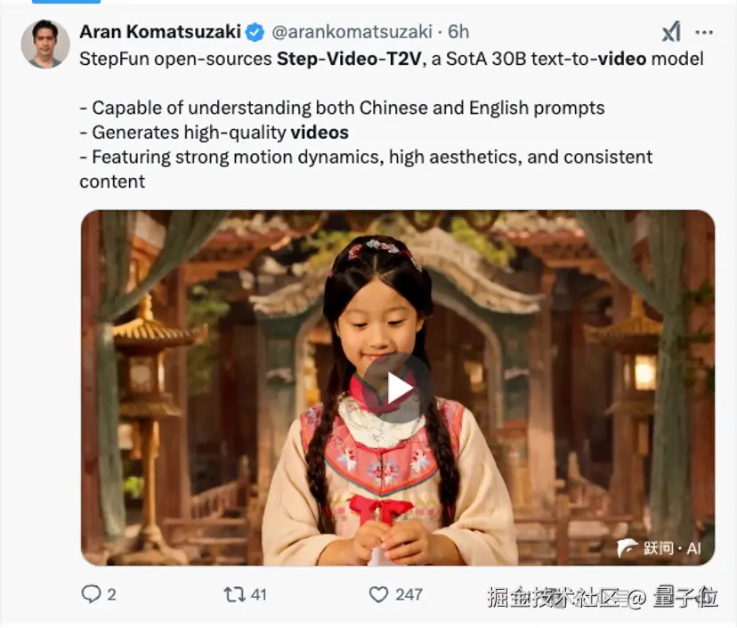 全球范围内参数量最大的开源视频生成模型 Step-Video-T2V